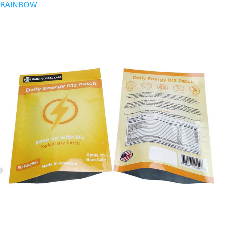 | نام محصول | بسته بندی بسته بندی شده انرژی الکتریکی B12 Patch بسته بندی شده Mylar Ziplock Foil Pouch |